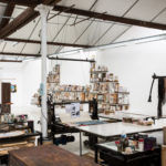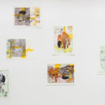 Certaines pièces uniques ont été fabriquées à partir de macules (feuilles de passe pour effectuer les réglages avant le tirage en lithographie). Des motifs ont été évidés pour laisser apparaître les fragments d’un dessin positionné en-dessous.