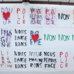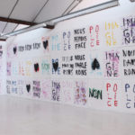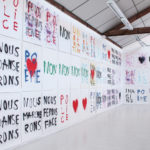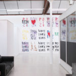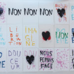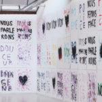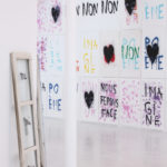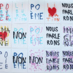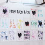 La grande fidélité à l’image de l’impression lithographique ainsi que la rapidité avec laquelle se font les tirages permet de décliner un même geste pour en faire des traces différentes. Par le jeu des associations et des répétitions, des juxtapositions et des superpositions, les mots, les couleurs et les formes deviennent polysémiques. Cet usage des signes par Anne-Lise Coste dévoile la porosité d’un monde poétisant et d’un monde de revendications. Nous danserons offre aux visiteurs une polyphonie silencieuse dans laquelle l’intime devient un slogan politique : en partage dans ce nous qui rassemble.