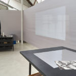 Les visiteurs sont invités à circuler librement dans ce nouvel environnement qui joue volontairement de la porosité entre les formes et les statuts des objets qui s’y trouvent. Vraies fausses sculptures, assemblages involontaires et outils bricolés se côtoient et s’apprivoisent. Les impressions produites pour l’exposition voisinent les tests oubliés aux murs il y a plusieurs années, ou bien s’effacent en arrière plan d’un amoncellement hétéroclite, à la manière de fonds photographiques, soulignant certains points de vue, certains cadrages que l’œil construit et déconstruit au gré de ses déplacements. Suivant l’activité de l’atelier, l’exposition est amenée à évoluer de manière imprévisible, participant pour un temps à la multiplicité des histoires qui s’y enchevêtrent, s’entrechoquent et s’éclairent.