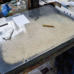 Pour son exposition intitulée Raúl D., Mark Geffriaud a souhaité réaménager les lieux en délocalisant une partie des machines et des outils dans l’espace d’exposition afin de permettre, en retour, à l’exposition de s’introduire dans l’atelier. Cette nouvelle forme de cohabitation vise à déplacer les usages, en modifiant les habitudes de circulation, de production et de regard.