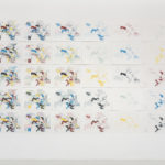 Benjamin Hochart réalise, en usant des conditions propres de l’impression lithographique en couleurs, le tour de force de proposer 5 images différentes (dans l’agencement des couleurs) et parfaitement identiques (le motif demeure strictement le même d’une image à l’autre).