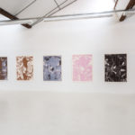 5 lithographies, composées chacune de 5 couleurs. Pour cet ensemble, l’artiste a dessiné 5 pierres, puis a déterminé 5 couleurs. De la pierre désignée comme première est réalisé 5 tirages, dans chacune des 5 couleurs. La pierre numéro 2 se superpose au premier dessin imprimé, elle-même imprimée dans les 5 couleurs, les superpositions permettent à chaque image d’être in fine composée des 5 couleurs.